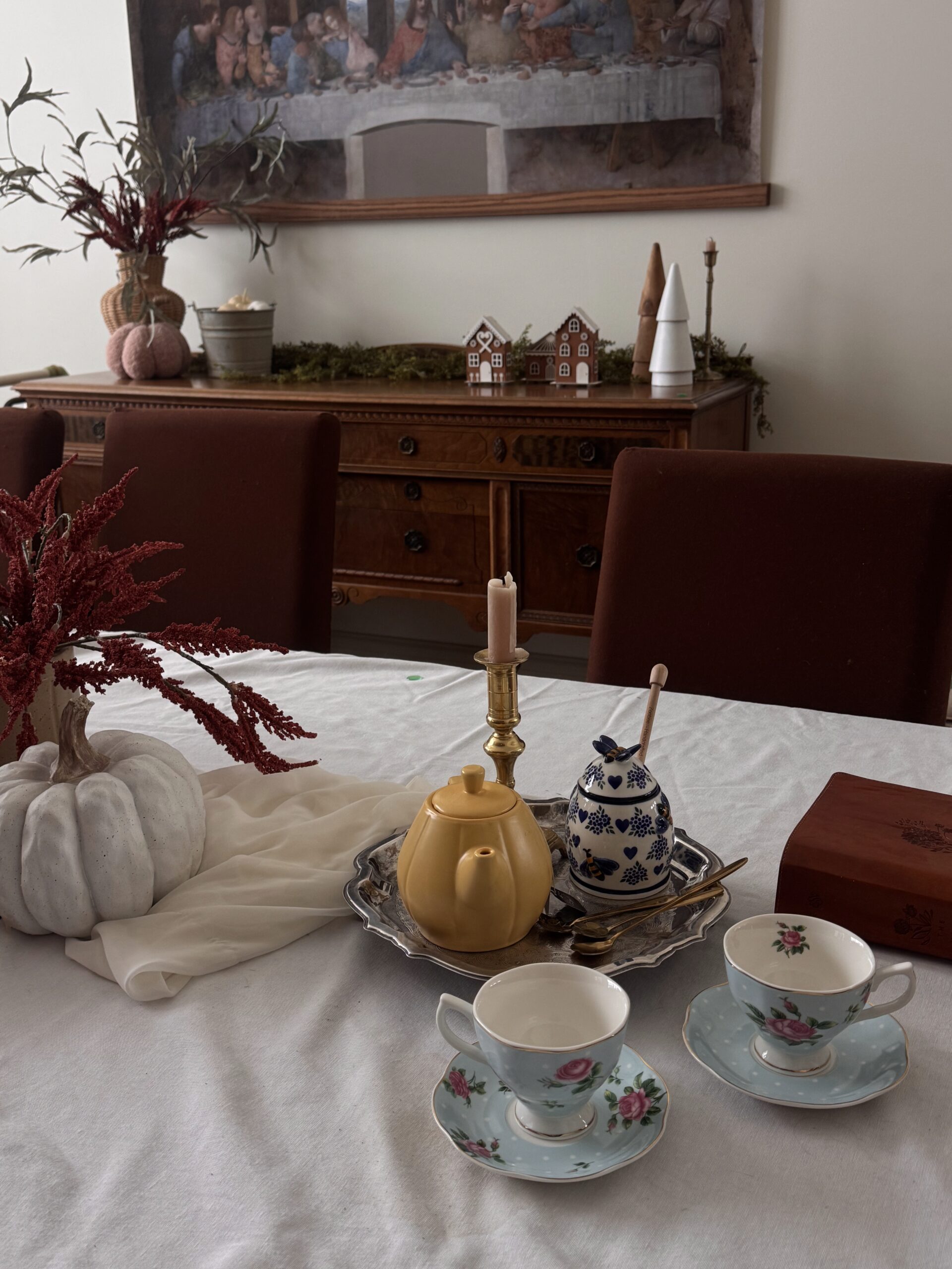 I had no idea what to do with the table settings, but then I realized my kids have so many stuffed animals, why not have them displayed??